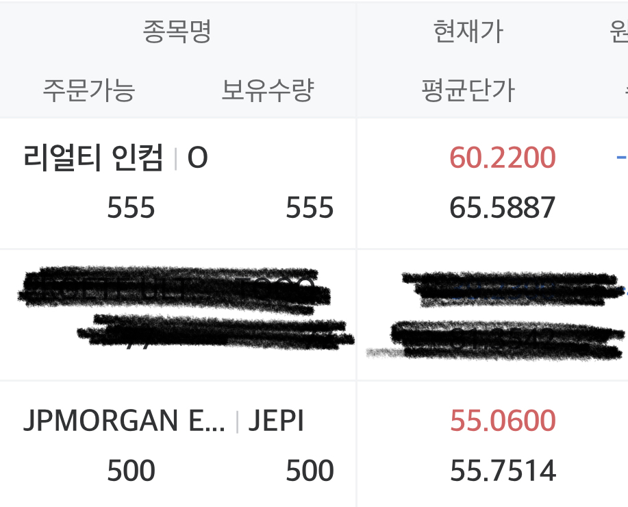 현재 리얼티인컴‘O’ , ‘JEPI’를 꾸준히 매수하고 있습니다. 현재 리얼티인컴은 555주가 되었고, JEPI는 500주가 되었습니다.