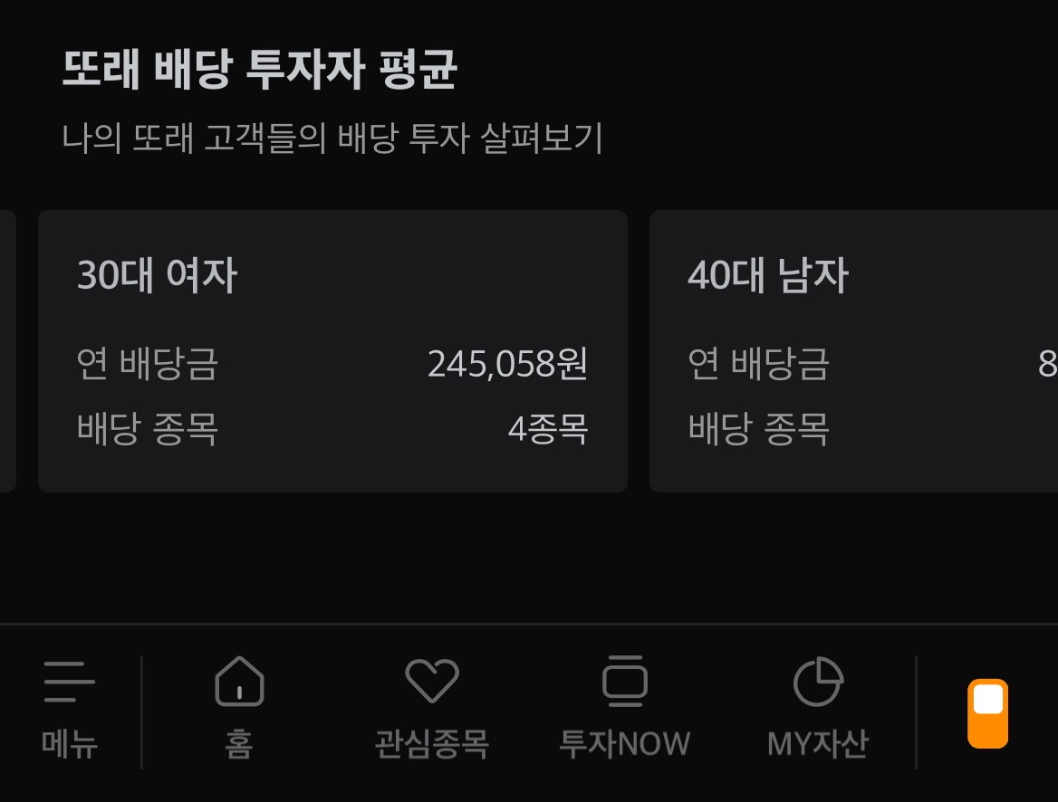 배당플래너 아래쪽으로 내려가 보면 또래 투자자들의 평균 배당금액도 알 수 있으니 궁금하신 분들은 확인도 가능하시겠죠?