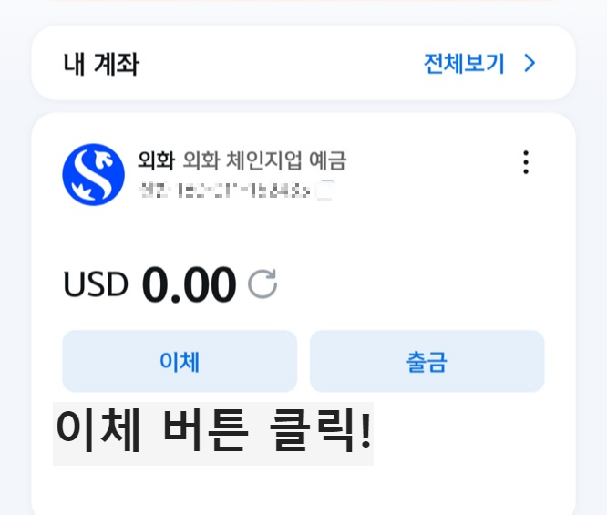 '신한 쏠 어플'에 들어가 외화 통장에 있는 이체 버튼을 클릭합니다.