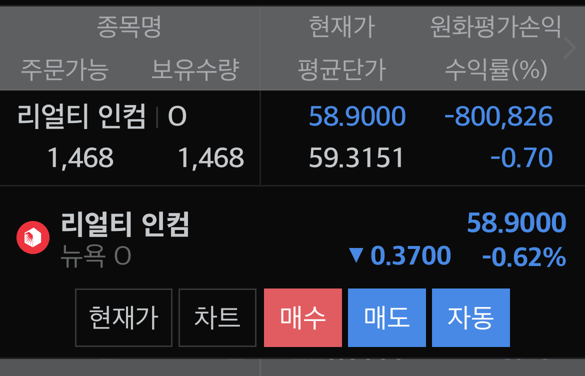 현재 리얼티인컴의 보유수량은 1,468주 입니다.