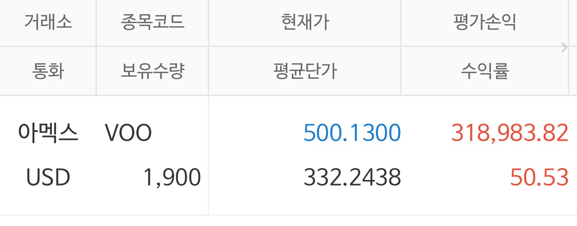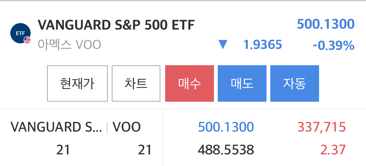 VOO 가격이 500$을 돌파하기도 하고, 고환율까지 겹쳐 다소 부담이 되었던 것 같습니다.