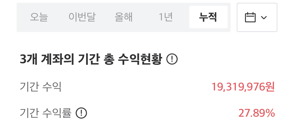 투자를 하면서 느끼지만 돈을 모으는 데까지는 시간이 꽤 걸렸지만 불어나는 속도는 어마어마하다고 느껴지네요.
