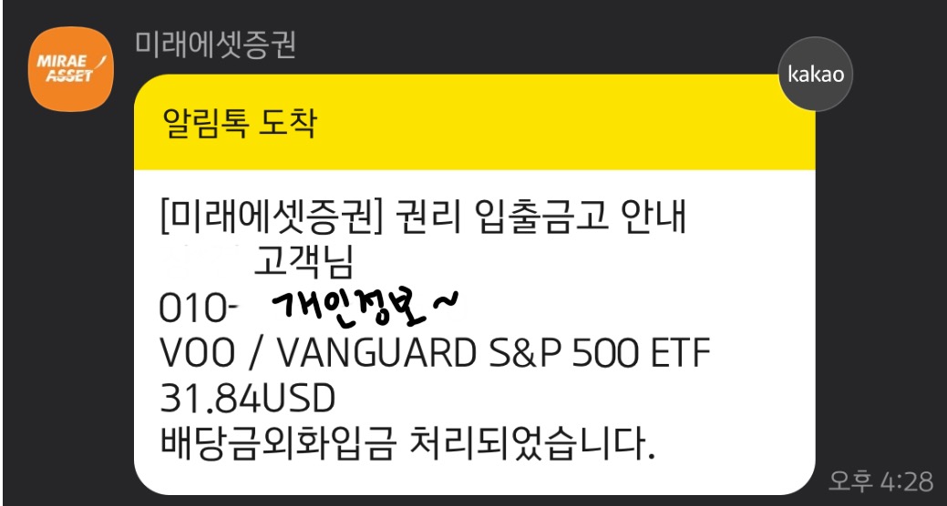 오늘 반가운 voo의 배당금이 입금되었네요.