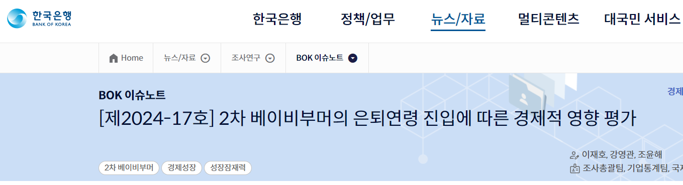 한은에서 발표한 연구자료에 따르면 충분하지 않은 노후 대비로 인하여 2차 베이비부머 세대들은 은퇴 후 소비를 줄이게 된다는 연구결과 나왔습니다.