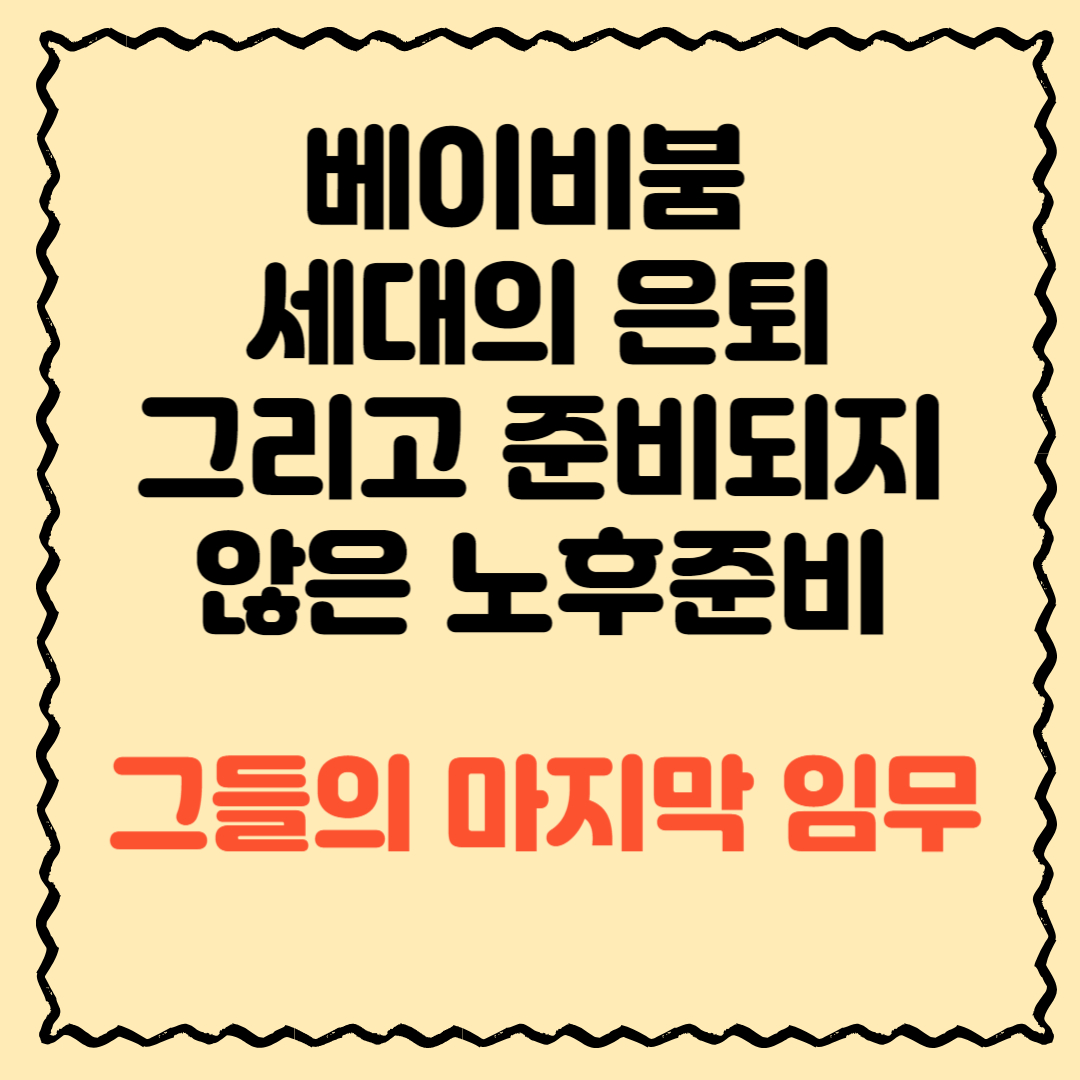 베이비붐 세대의 은퇴 그리고 준비되지 않은 노후 맞이. 그들의 마지막 임무