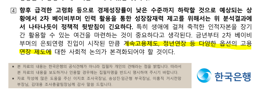 은퇴 후에도 일을 이어서 할 수 있도록 고용의 질을 올리는 것 또한 경제성장률에 영향을 미칠 수 있겠죠.