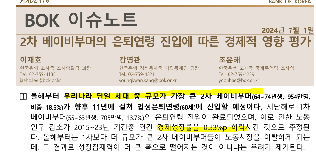 이들이 은퇴를 맞이하게 된다면 우리나라의 경제 성장률은 어떻게 될까요?