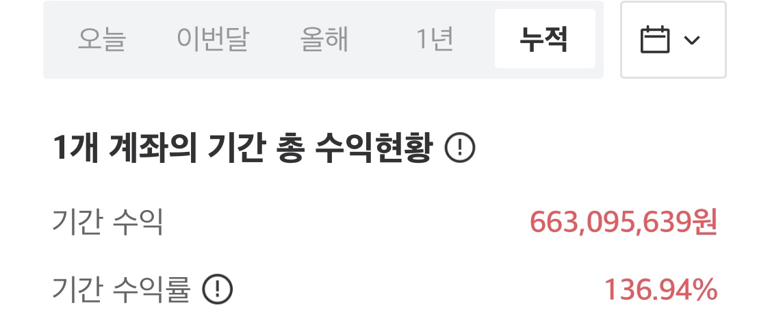 이렇게 부부합산 총 누적수익금액은 6억 9천 가량이 되었습니다.