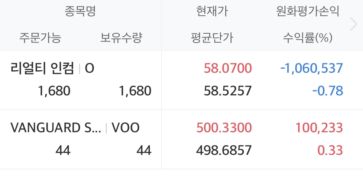 | [7월 1주 투자결산] VOO 1,940주 / 리얼티인컴 1,680주 수익인증 (4) | 2024.07.06 |