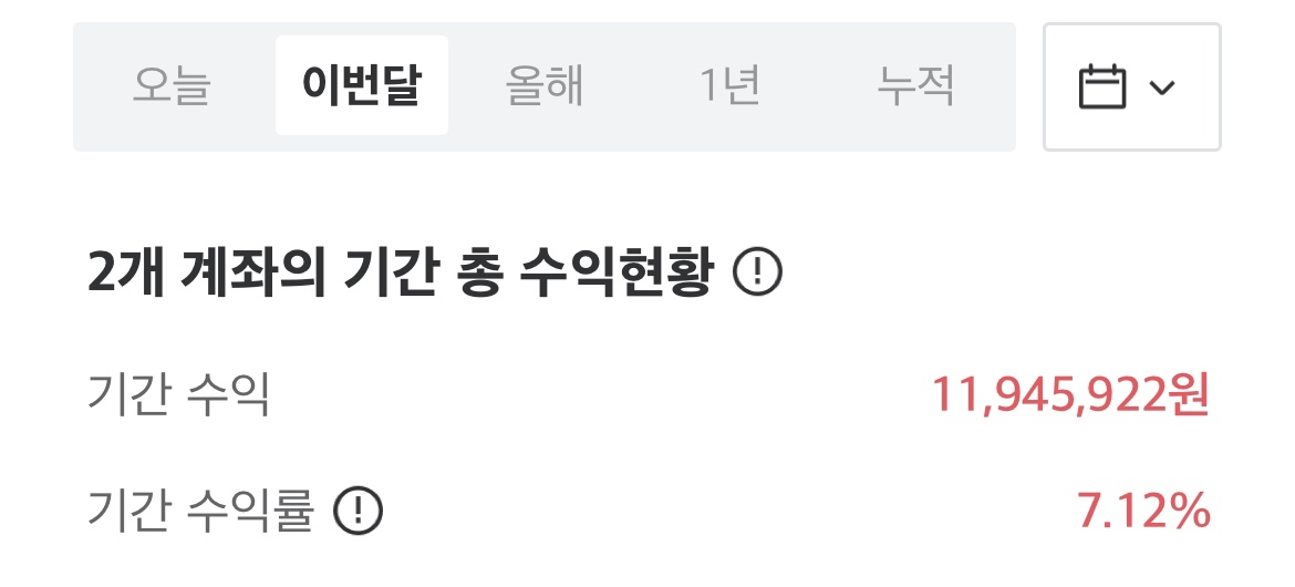 부부합산 이번달 수익은 1,263만 원 정도입니다.