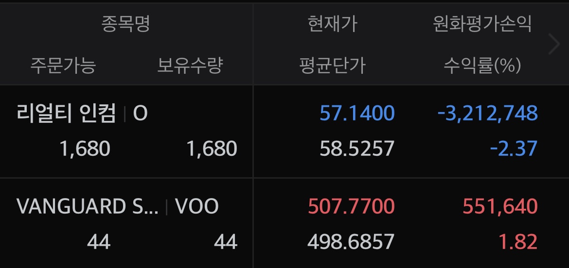 포트폴리오 VOO 1,964주 리얼티인컴 1,680주