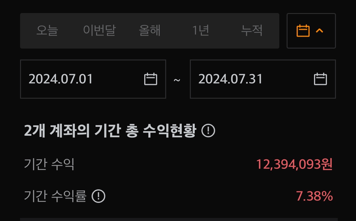 생각보다 VOO의 성장세가 꺾였던 것 때문에 수익이 조금 떨어진 것 같습니다.