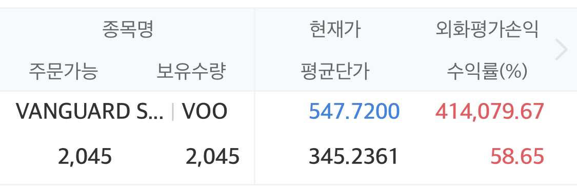 우리 부부가 조금씩 꾸준히 모은 이 VOO가 현재 우리 부부의 ‘경제적 안전망’이 되어주었어요.