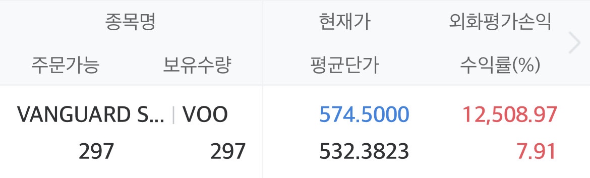 우리 부부는 이번에 받은 분배금을 전부 재투자해서 VOO 7주를 추가매수 했습니다.