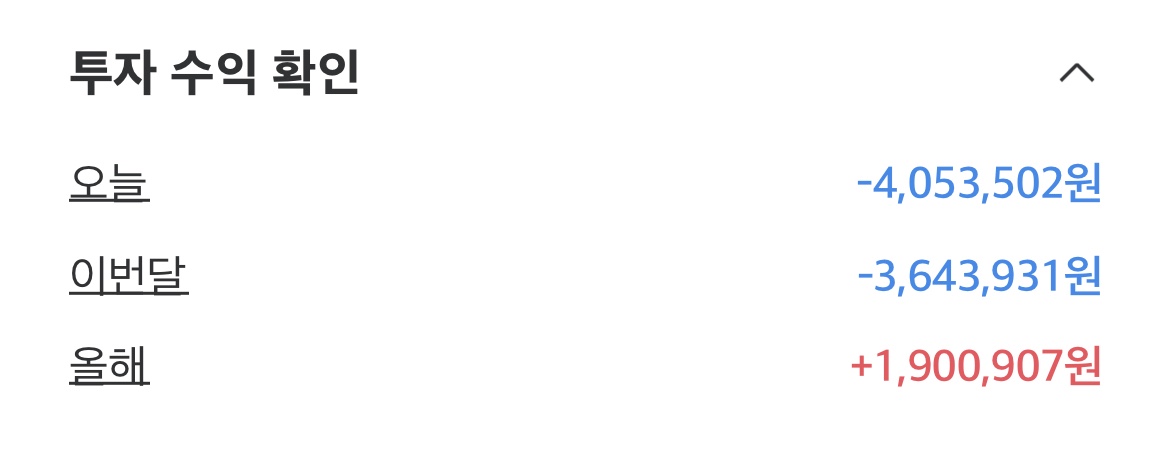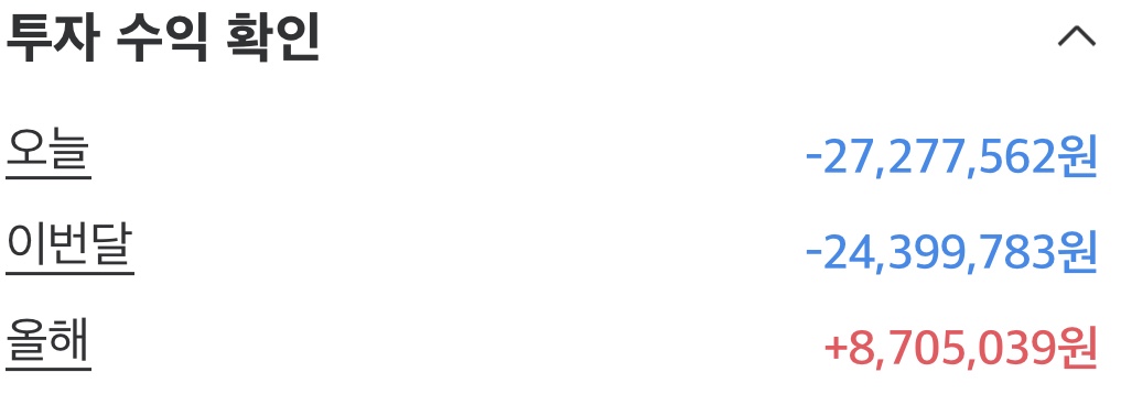 8월 1일부터 큰 하락을 맛보면서 이번 달 수익은 마이너스 2,800만 원 정도 올해 수익은 1,100만 원 정도