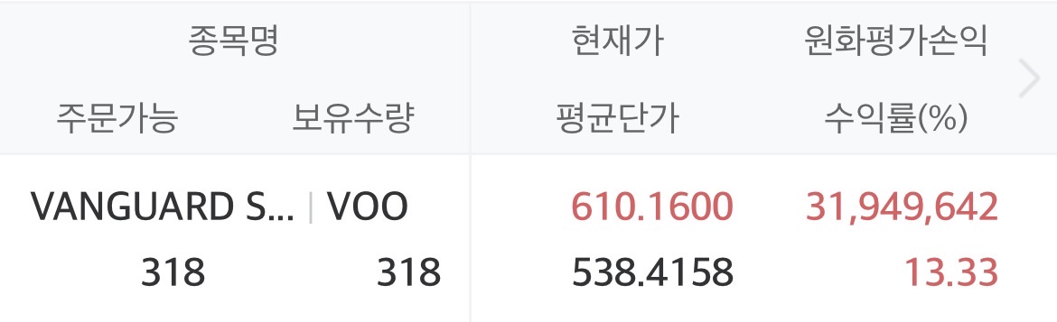 | [9월 2주 결산] S&P 500 VOO 적립식 투자 누적 수익 10억 돌파! (1) | 2025.09.15 |