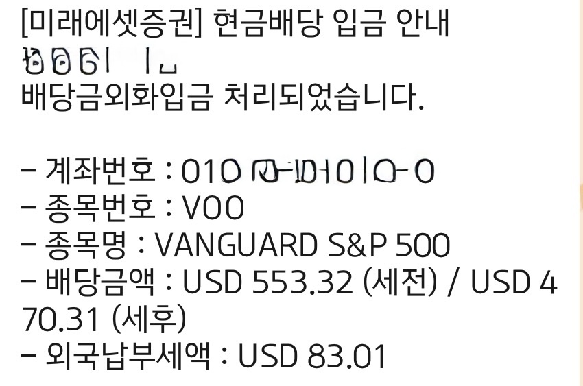 이번 10월에는 VOO에서 배당금이 입금되었습니다.