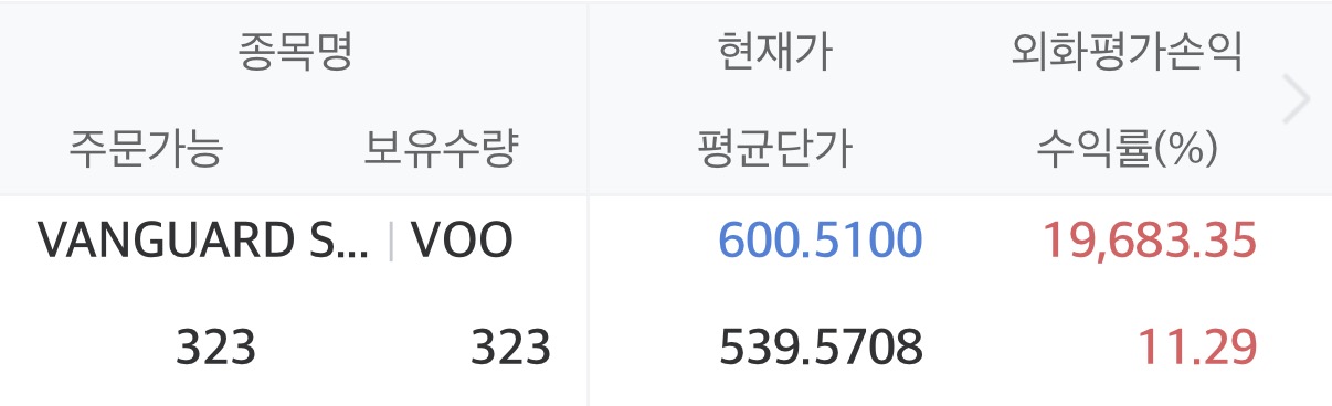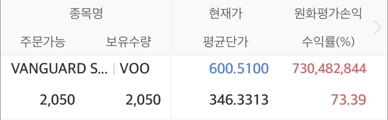 부부합산 VOO를 2,373주를 보유하고 있습니다.