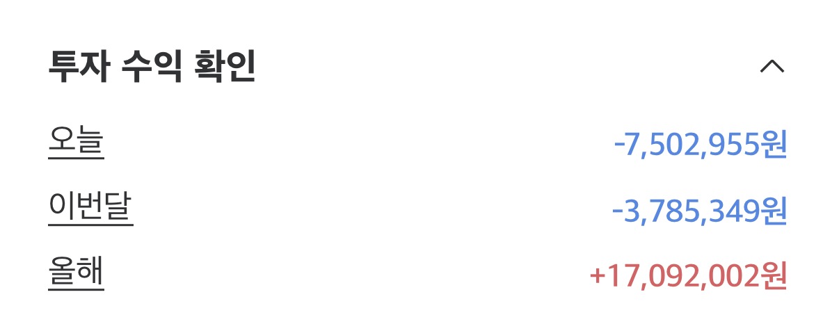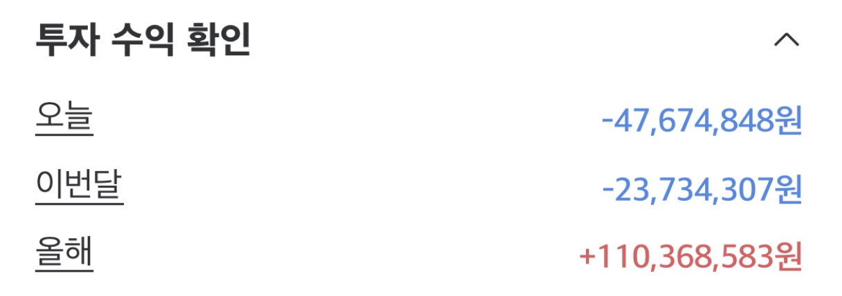 지난밤의 충격으로 이번 달 수익은 마이너스 2,700만 원 정도, 올해 수익은 1.3억 정도,
