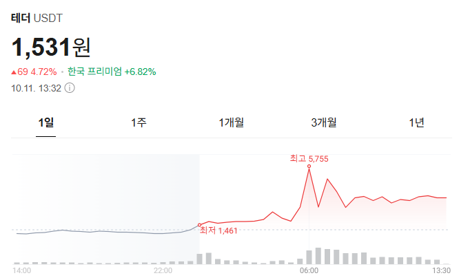 여기서 중요한건 달러 스테이블코인은 이미 1,530원을 넘었다는 거예요.