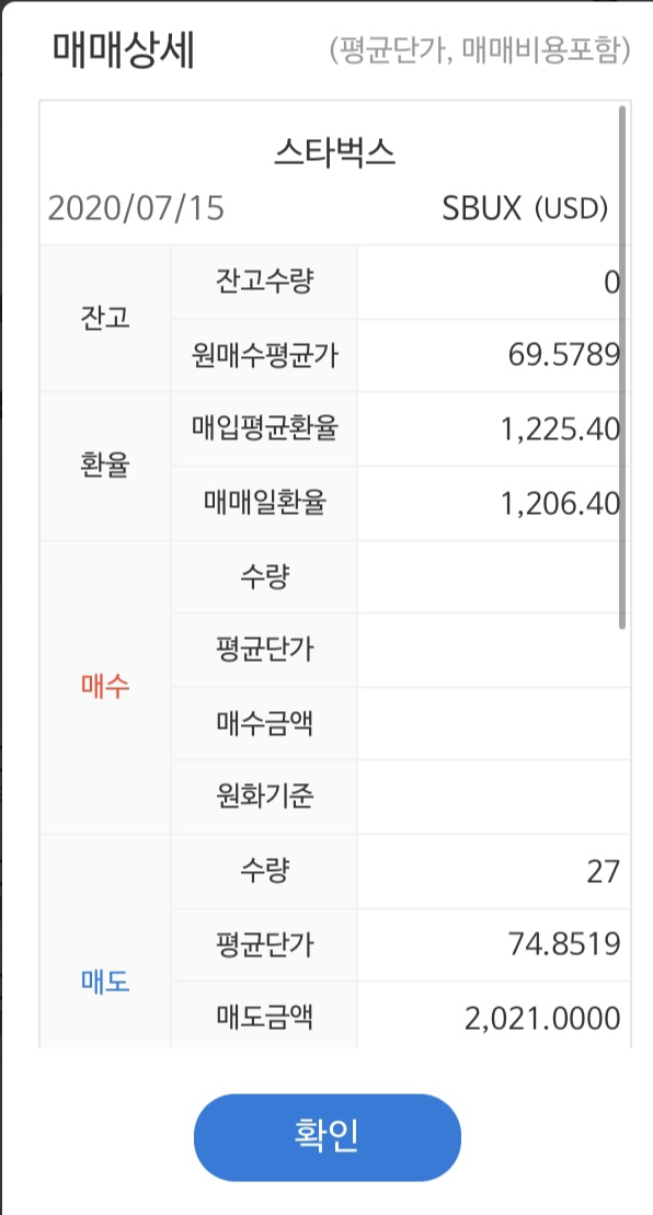 보유하고 있던 스타벅스는 총 27주였습니다.