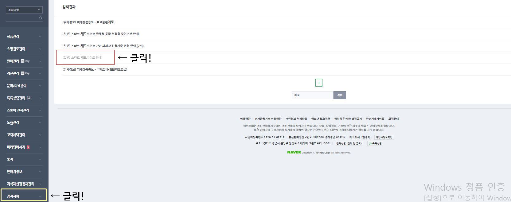 네이버 스마트 스토어에 로그인을 해주시고, 공지사항을 들어가서 검색란에 '제로'라고 검색하시면 아래와 같이 네이버 측에서 공지한 내용이 나오게 됩니다.
