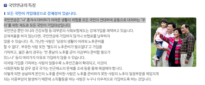국민연금은 국민들의 노후를 보장하고 삶의 질을 올려주는 국가 제도적 장치입니다.