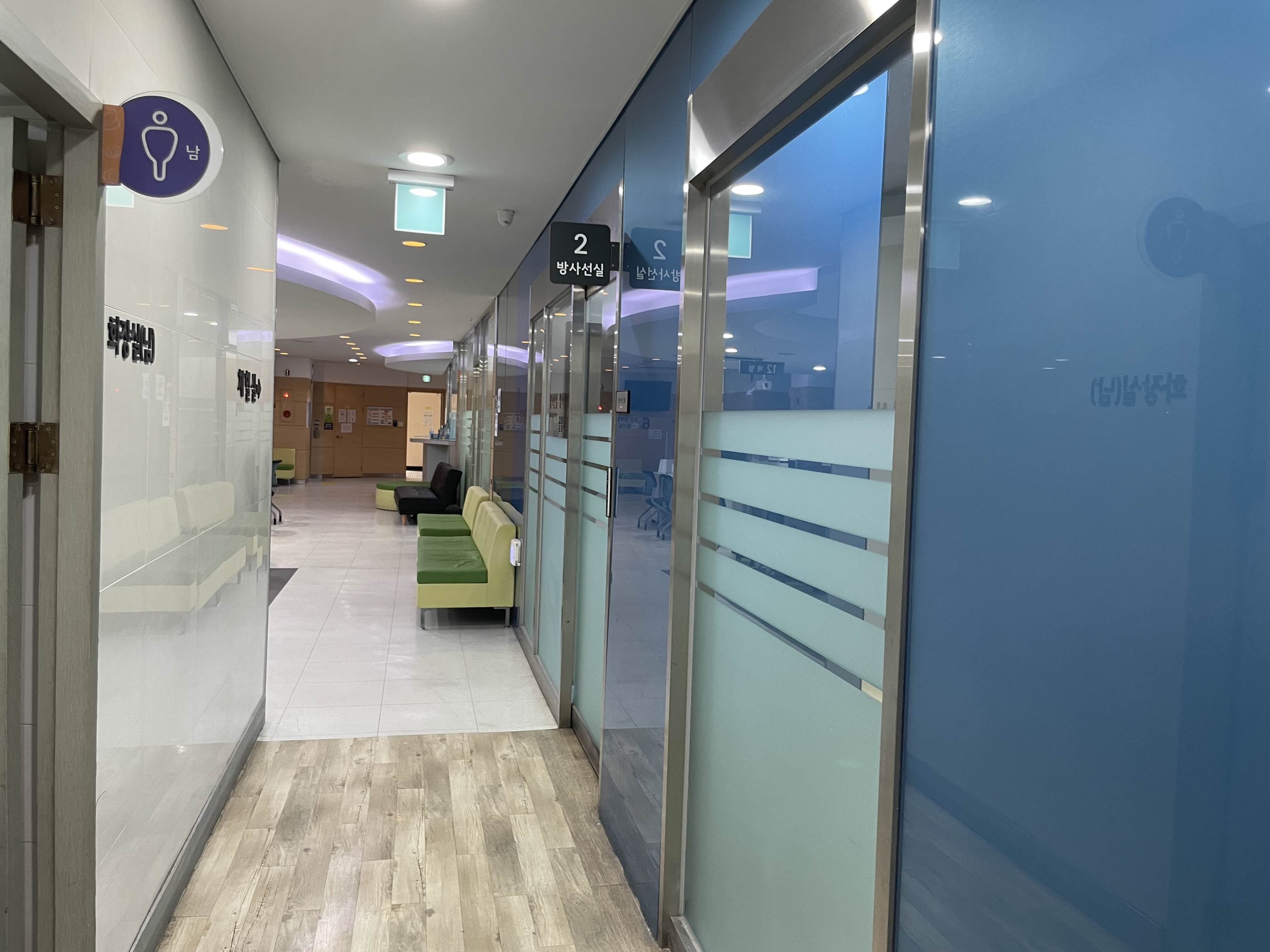 이렇게 종이를 받아 들고 2층으로 향하면 보건증 검사 시 필요한 방사선, 장티푸스 검사실이 있습니다.